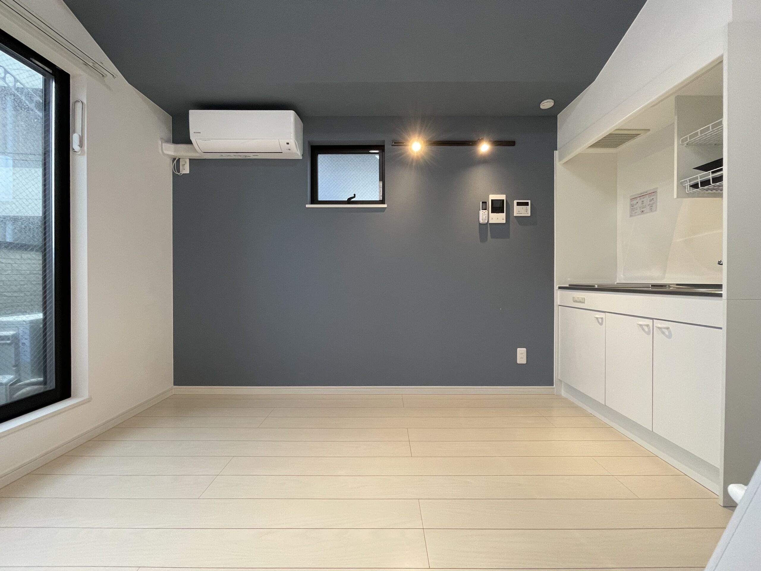 ミントグリーンのクロスに間接照明で演出を
