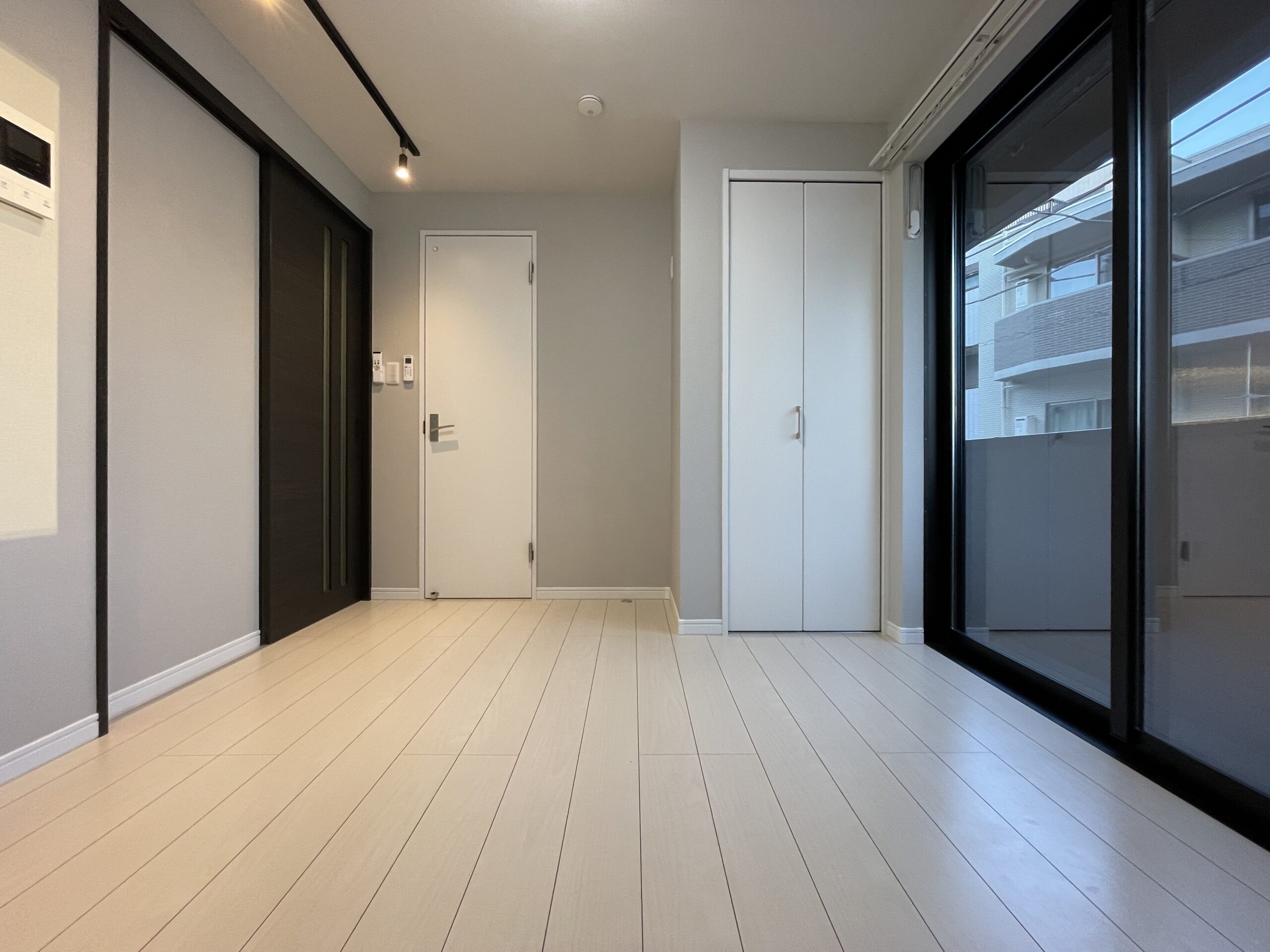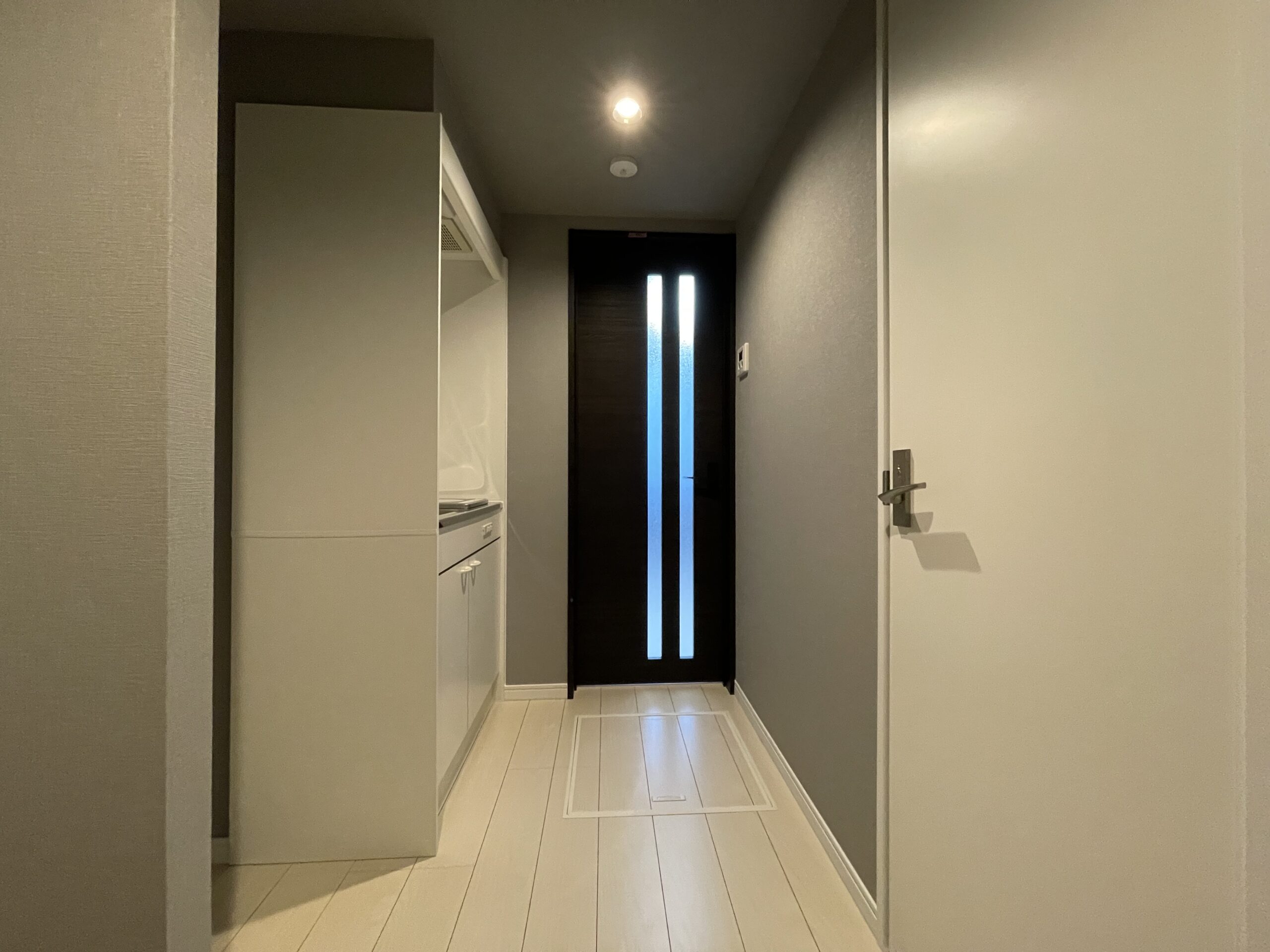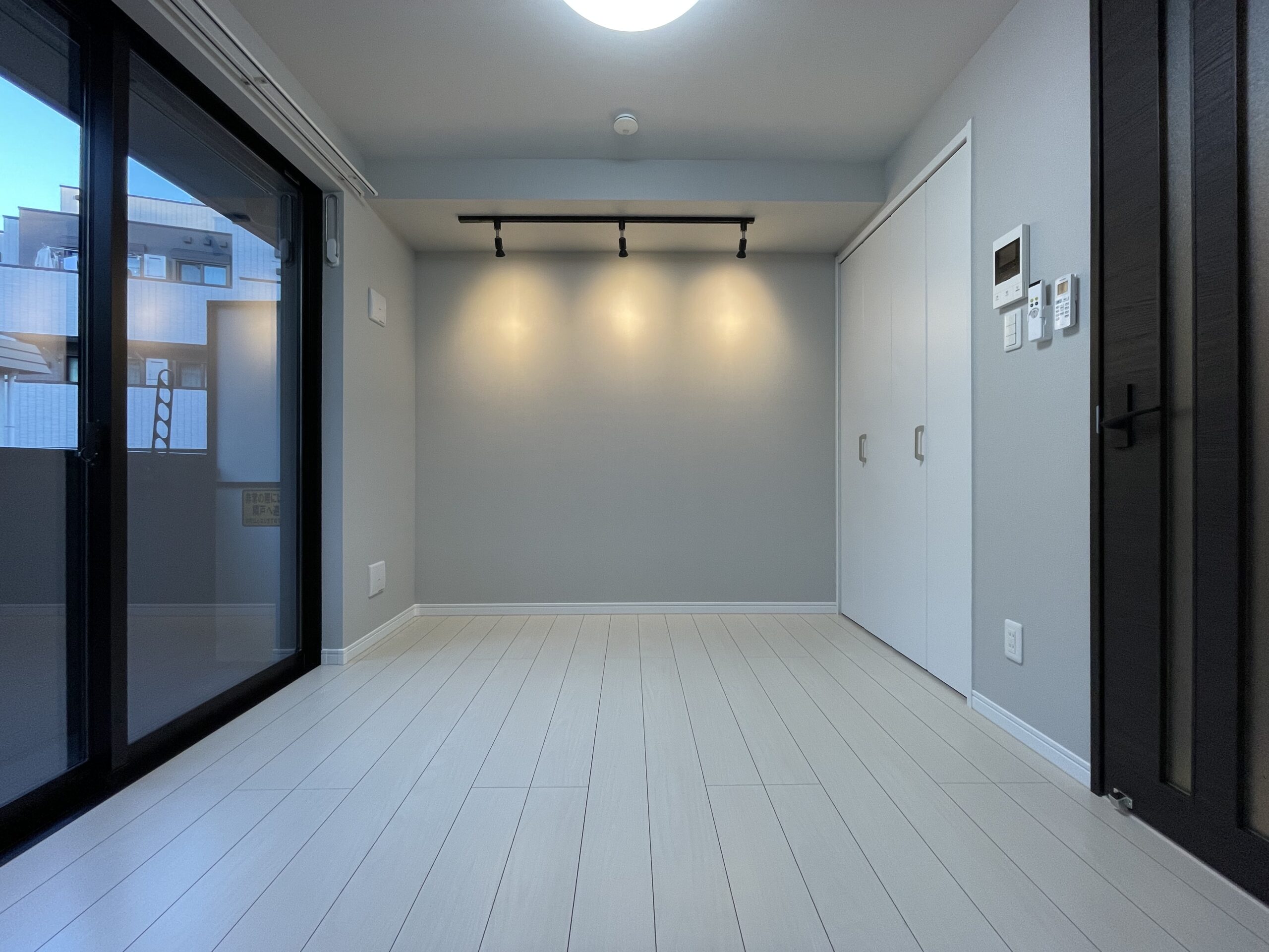 ライティングレールなど間接照明が彩をプラス。アクセントクロスも採用しお洒落な室内空間に