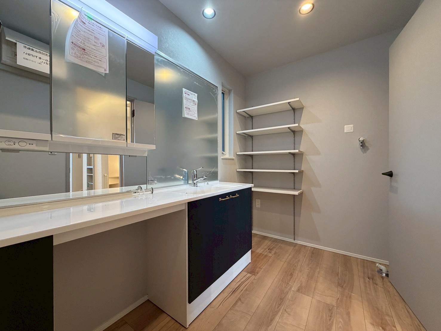 同時使いできるワイドカウンター洗面台で身支度もスムーズ。